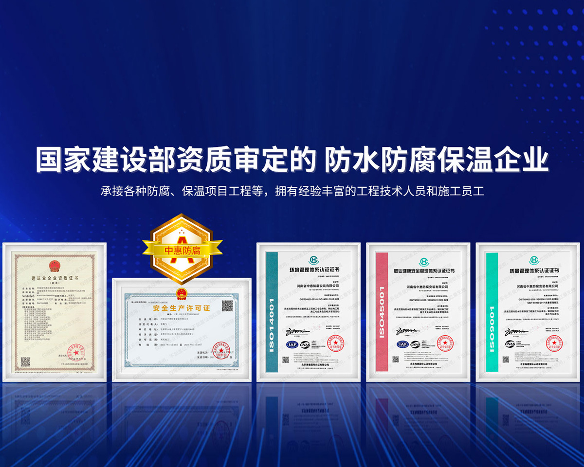 公司經營范圍:防水防腐保溫工程;消防設施工程;建筑裝修裝飾工程;建筑機電安裝工程;電力工程;建筑工程;石油化工工程;工業清洗工程;油罐清洗工程;鋼結構工程;環保工程;模板腳手架工程;電纜防火封堵、防污閃噴涂、外墻外保溫工程;各類施工勞務作業;設備維修、船舶鉚焊、涂裝;電力工程材料、建材、防水材料、防火材料、防腐保溫材料銷售,并相繼通過了GB/T19001-2008idtISO9001:2008GB/T50430-2007質量管理體系認證證書。GB/T24001-2004idtISO14001:2004環境管理體系認證證書。GB/T28001-2011idtOHSAS18001:2007職業健康安全管理體系認證證書。公司是中國防腐蝕于防護協會、中國施工企業管理協會、電力協會和中國鋼結構防水協會會員單位。 公司的經營業務涵蓋了石油、化工、電力、冶金、煤炭、船舶、國防、燃氣、水利、環保、交通運輸、航空及國防軍工和輕紡市政等行業的防腐保溫絕熱設備。鋼結構安裝、防火、防水、金屬噴鍍、聚脲噴繪、陰極保護、防滲透堵漏、玻璃鋼及各種磚版材料襯里、橡膠襯里、煙氣硫和耐酸溶劑腐蝕等工程施工。公司連續十年榮獲“省市先進施工企業”“安全生產先進單位”“重合同,守信用企業”和“AA***資質企業”的稱號。2000年被命名為市級文明單位,2002年被國家工商行政管理局命名為“重合同,守信用的企業”、被中國工業防腐蝕技術協會命名為“防腐蝕企業,能源節約及環境保護領域有豐富的經驗和***的業績。工程一次交驗合格率100%。其中攀枝花鋼鐵公司煉鐵廠四號高爐及熱風爐防腐工程、上海寶鋼公司煤氣柜防腐工程、撫順石油一廠裝置防腐項目、齊魯石化公司稀烴廠高塔防腐工程、吉林化學工業公司煉油廠油罐防腐工程、天津石化熱電廠六號爐頂棚聯絡管保溫工程、大慶油田(太倉)力神泵業工程、中國化學工程第十一建設工程、中原油田勘探局工程、中國石化銷售有限公司華北分部、魯皖輸油管道工程、貴州開磷息烽合成氨工程、陜西黃陵煤化工程、中國石油天然氣西部管道塔里木輸油工程、邯鋼集團邯寶鋼鐵公司煉鐵工程、德州供電工程、吉寶(南通)船廠工程,偃師華潤熱力工程、鄭州熱力總公司。 河南省中惠防腐安裝有限公司愿以豐富的施工經驗,***的技術,***的設備,***的管理,***的服務,竭誠為國內外廣大的用戶提供***滿意、******的工程作品。 我公司愿與國內外同仁一道,團結協作,共同推進防腐蝕行業發展! 公司地址:河南省長垣縣建設路北段360號 固定電話:0373-8866488 郵編:453400 網址:http://www_zhff_com_cn.primeteensex.com